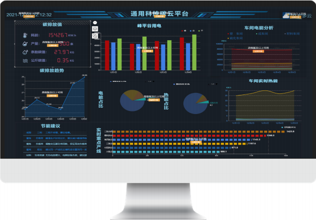 “十四五”是碳達峰的關鍵期、窗口期,通過數字化建設,可在節能、降耗、減排、污染監管等領域利用數字化、智能化技術實現行業數字化轉型,從而實現數據采集到數據應用的全生命周期管理,加強行業大數據整合共享和應用能力。可以說企業的數字化轉型升級,就是在為低碳化戰略賦能。碳中和是數字化轉型的核心力,數字化是低碳化戰略驅動力。據了解,通用股份碳云平臺通過工業互聯等技術,將全面采集、評估分析工廠使用的電力、蒸汽、燃氣、水務等各類數據,利用碳監測算法生成能源碳排熱力圖,指導車間、設備、班組持續開展節能工作,從而節約資源和減少能源消耗,實現“一屏觀全局”,即使通過手機app也可實時便捷掌控。