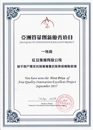 9月26日-27日,第二屆亞洲質量功能展開與創新研討會在杭州舉行,紅豆集團發表的“基于客戶需求的連鎖專賣店服務接觸點管理”項目,榮獲亞洲質量創新優秀項目一等獎。國家質檢總局質量管理司副司長陳曉波,亞洲QFD協會會長、國際著名質量專家、日本戴明獎評審委員長新藤久等國內外知名專家學者擔任本次研討會嘉賓,現場共有200余家企業參加本次研討會。紅豆等30余家企業進入研討會現場發表環節,經專家評審和企業答辯,紅豆集團等10家企業發表的項目得到評審組高度認可,榮獲一等獎。