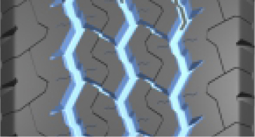 三條寬闊的曲折排水溝槽,有效防止輪胎側向打滑;S型花紋設計,提高輪胎制動剎車性能。