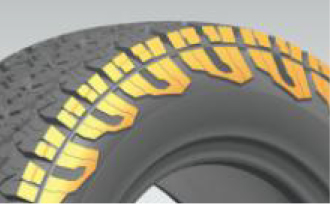 通過計算機仿真優化,優化各花絞塊的強度,各花紋塊堅實有力,可以應對各種嚴苛環境,保證輪胎的牽引能力;